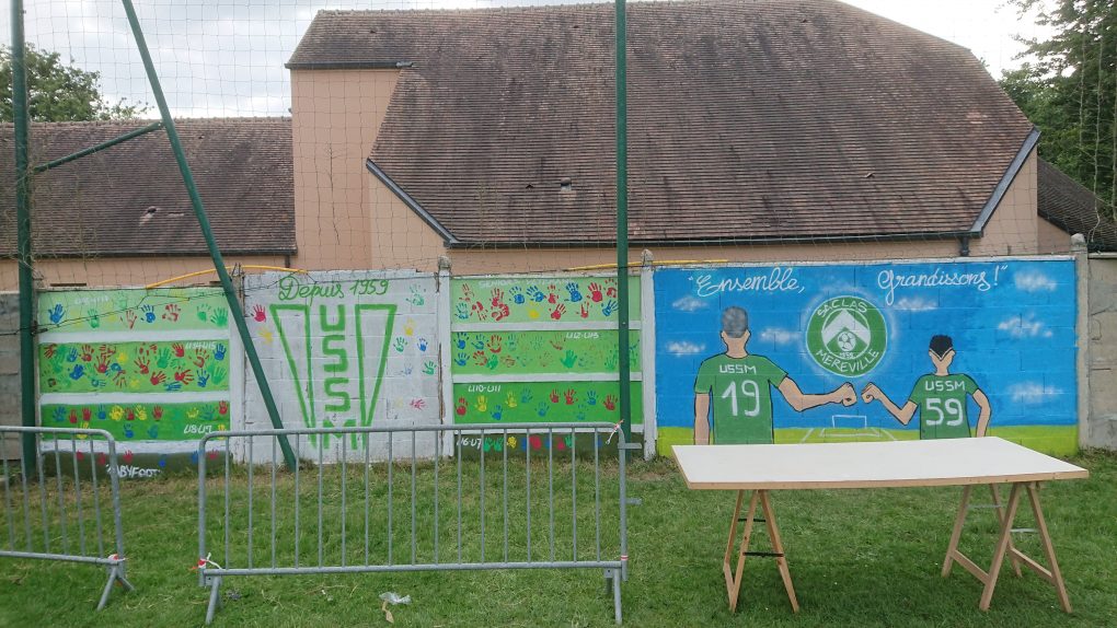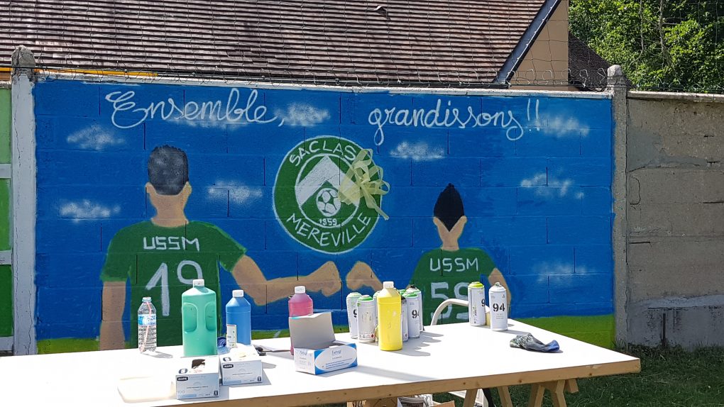 Pour ses 60 ans l’USSM un club de football du sud de l’Essonne a décider d’organiser une journée remplie d’animation et d’activités autour du football mais aussi de l’unité intergénérationnelle. Ils ont donc fait appel a R2Déco pour animer un atelier en live pour réaliser 1 grande fresque en l’honneur de l’USSM avec les jeunes du club, où chaque catégorie aura pu laisser sa trace. Le projet en images :