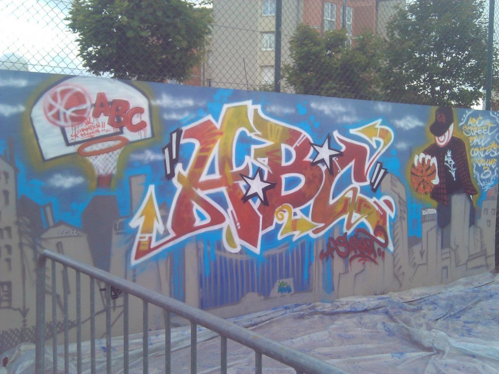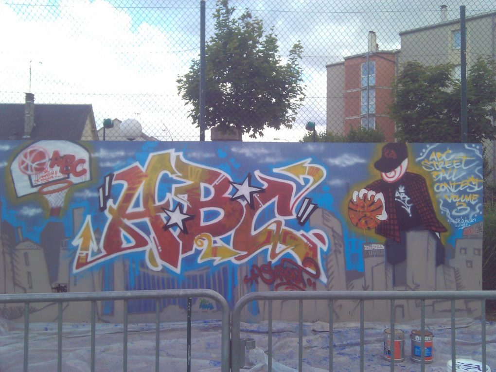 Le club de basket ABC Saint-Jean de Braye a fait appel plusieurs années durant à R2 Déco pour assurer une prestation en live lors de son tournoi de Basket annuel. Nous nous sommes donc prêté au jeu en réalisant des fresques colorées et dynamiques que vous pouvez voir ci-dessous :