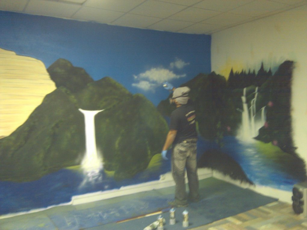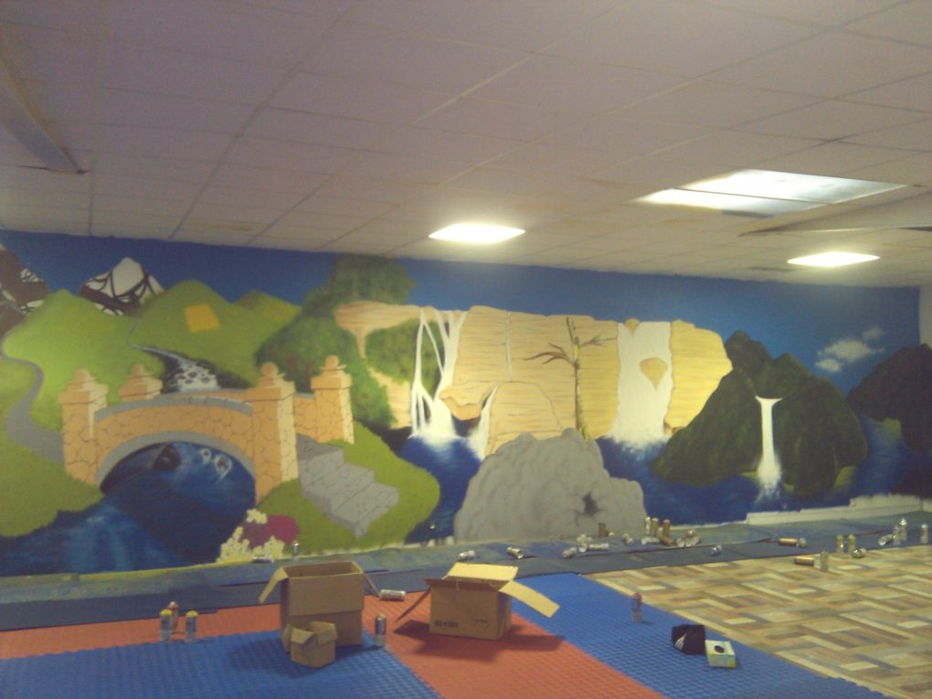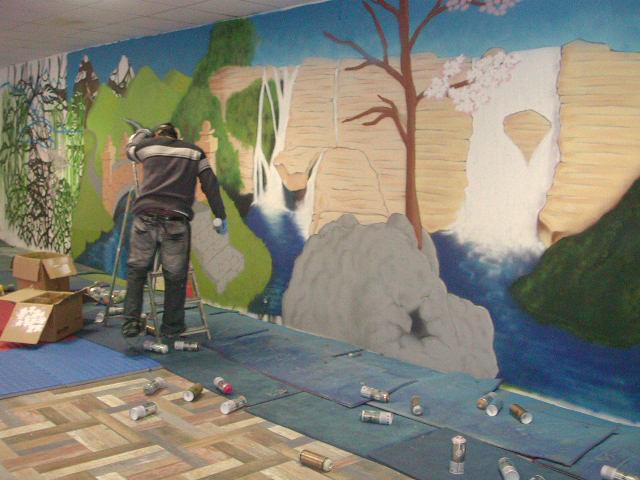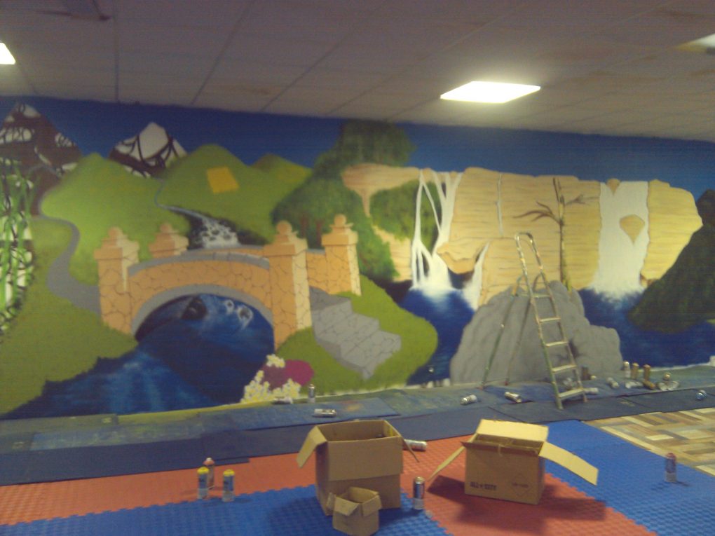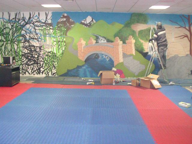 Devil Body est une salle de sport basée sur Le Mérévillois (91). Son propriétaire Christian ex-champion de body building voulait dans sa salle de sports collectifs une décoration originale et à la fois qui puisse agrandir son espace grâce à un trompe l’œil évoquant un paysage nature apaisant. R2Déco avait à l’époque accepté une de ses premières missions et réalisée avec brio! Découvrez le projet en image ci-dessous !