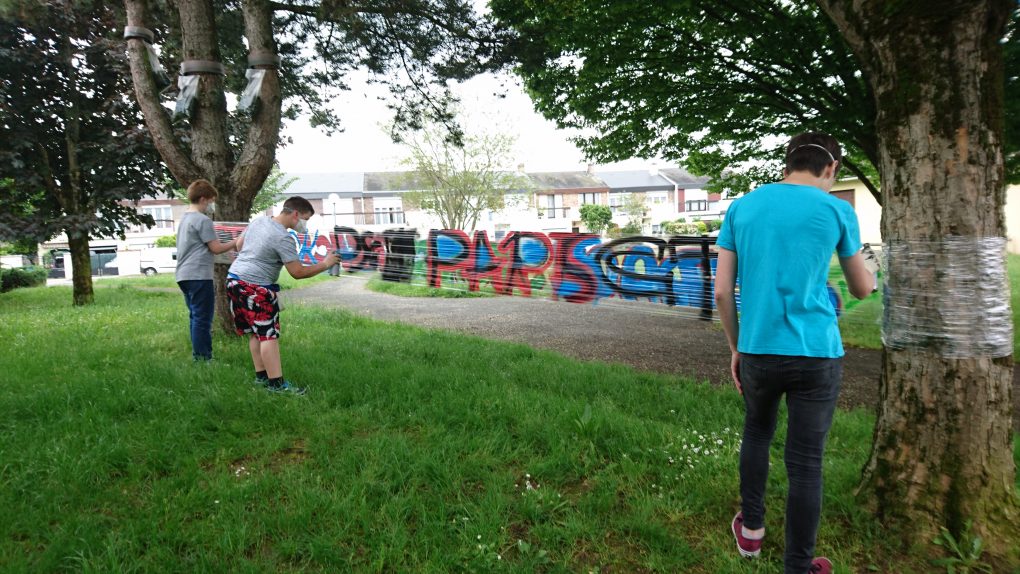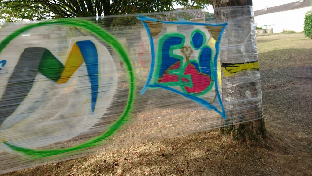 En marge d’une journée portes ouvertes, L’espace Jeune de Malesherbes a fait appel a R2Déco pour animer un atelier participatif en live avec les jeunes présents et les visiteurs, avec un atelier d’art éphémère en apposant du film cellophane autour de 3 arbres, créant ainsi un support original et éphémère pour l’occasion. Les jeunes ont pu s’adonner a la pratique du graffiti et les habitués ont pu rendre hommage à leur EJM et la communauté de Commune du Malesherbois. Découvrez-le ici :
