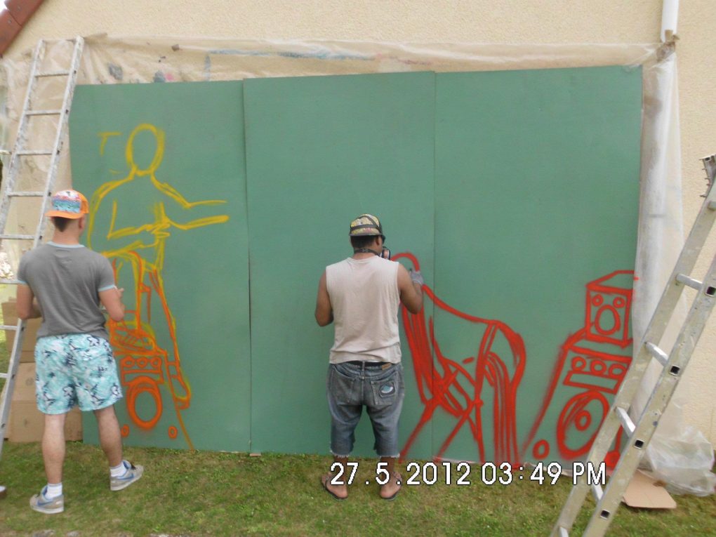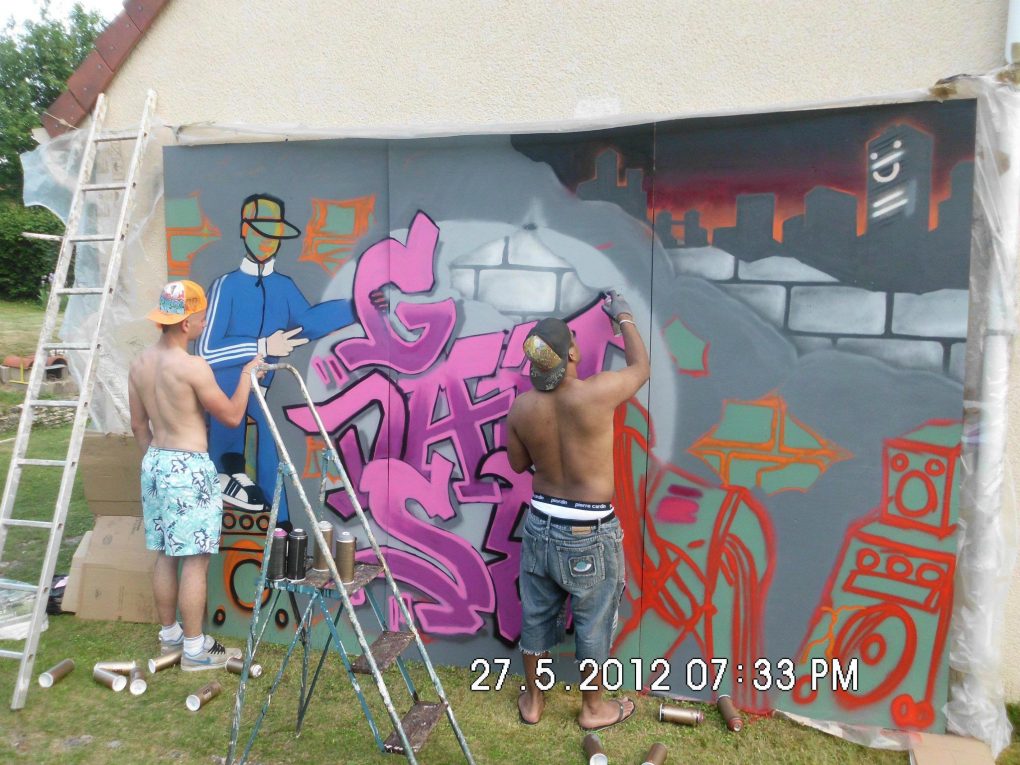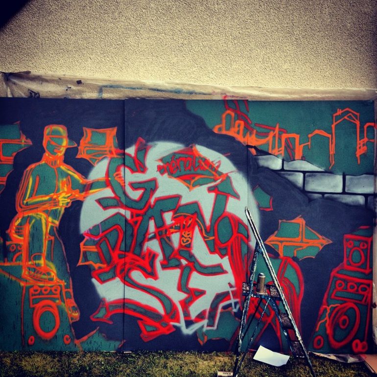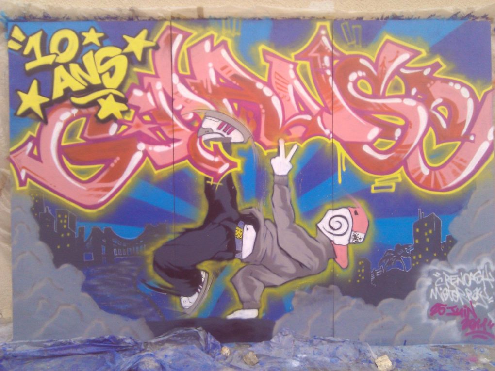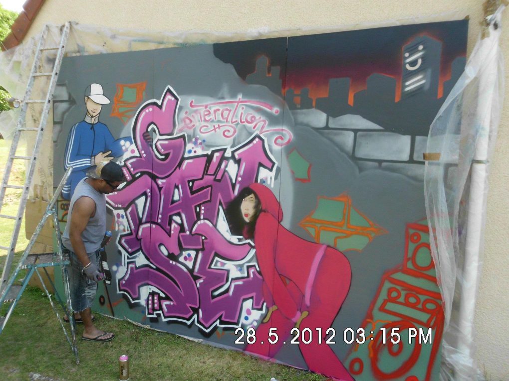 Plusieurs années durant R2Déco a réalisé un fond de scène pour l’association Génération Danse. Généralement un lettrage avec le nom de l’association dans un décors urbain souvent agrémenté d’un personnage, c’est avec grand plaisir que nous avons toujours collaboré avec Sylvie pour offrir un fond de scène dynamique à ses galas de fin d’année!