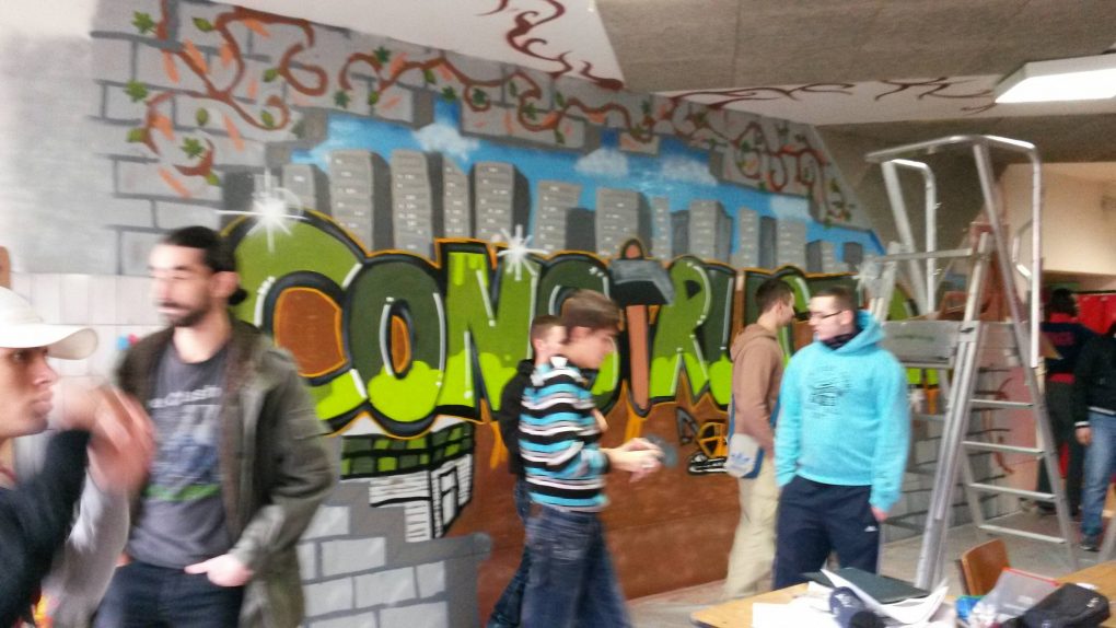 C’est dans ce contexte qu’une professeure d’arts plastiques du lycée Blériot a sollicité l’équipe de R2 Déco pour guider les élèves dans la réalisation d’une fresque représentant cette transition entre les 2 lycées. Le projet en images :
