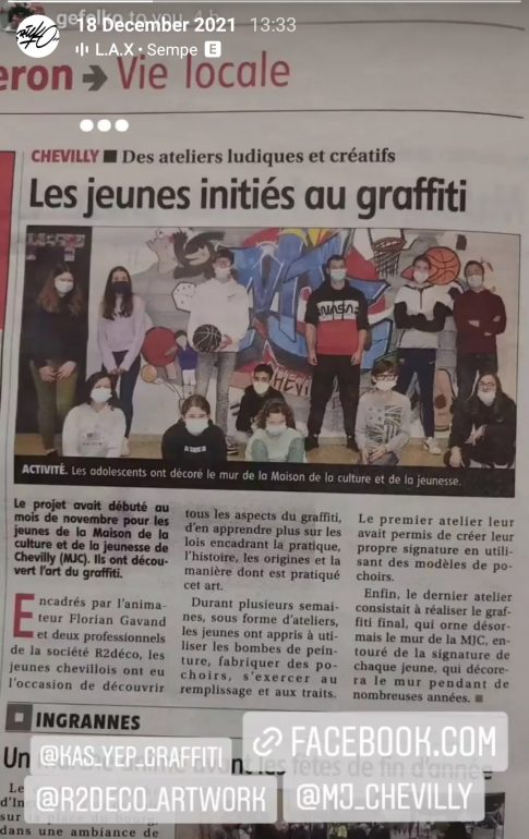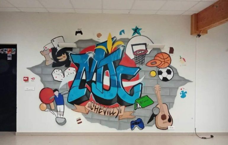 Pour permettre aux jeunes de Chevilly de s’approprier les locaux de leur MJC et d’imprégner les lieux de leur identité, la fresque représente les loisirs et activités pratiqués par les jeunes de cette maison de quartier. Découvrez le projet en image :
