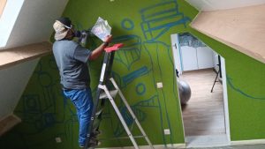 Une fois la maquette validée, et le matériel acquis, nous sommes prêts à intervenir sur le mur à peindre. Selon la nature de votre projet, il se peut que ce ne soie pas nécessaire, si vous avez choisi un projet Custom par exemple.