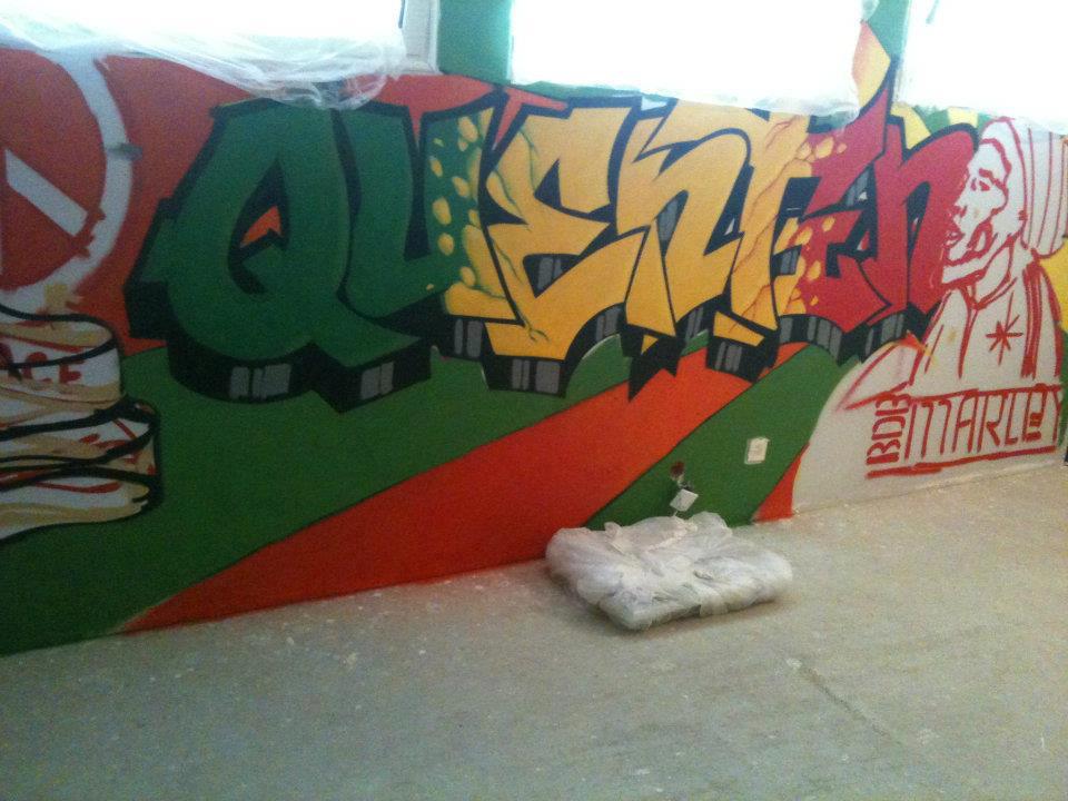 Quentin, Fan de reggae souhaitait son espace de vie décoré avec les couleurs portées haut par son idole Bob Marley : Vert Jaune Rouge. Découvrez ce projet en images :